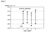 - FIG. 7 is a graph showing a comparison between the luminous flux of an automotive lamp according to an exemplary embodiment and that according to a comparative example.