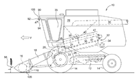 The crop processing device 24 threshes and separates the harvested crops. The grain and the chaff fall through grates on the bottom of the crop processing device 24 into a cleaning system 26. The cleaning system 26 removes the chaff and leads the clean grain to a (not depicted) elevator for clean grain. The elevator for clean grain lays the grain in a grain tank 28. The clean grain in the grain tank 28 can be sent to a truck or trailer by an unloading auger 30.