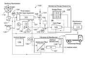 - a typical municipal wastewater treatment process includes the following stages: pre-treatment, primary treatment, secondary treatment, tertiary treatment, and sludge treatment.