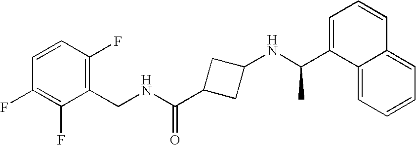 - AJZFEZBZBCBXPH-LMWSTFAQSA-N 3-[[(1r)-1-naphthalen-1-ylethyl]amino]cyclobutane-1-carboxylic acid Chemical compound N([C@H](C)C=1C2=CC=CC=C2C=CC=1)C1CC(C(O)=O)C1 AJZFEZBZBCBXPH-LMWSTFAQSA-N 0.000 claims description 19