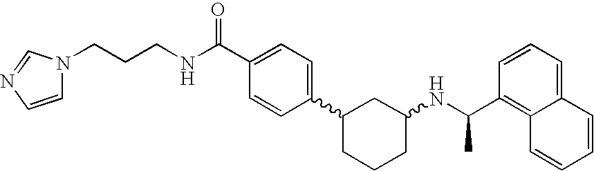 - XHECHHFQBPQRSS-PPNDLDFTSA-N 4-[3-[[(1r)-1-naphthalen-1-ylethyl]amino]cyclohexyl]benzoic acid Chemical compound N([C@H](C)C=1C2=CC=CC=C2C=CC=1)C(C1)CCCC1C1=CC=C(C(O)=O)C=C1 XHECHHFQBPQRSS-PPNDLDFTSA-N 0.000 claims description 24