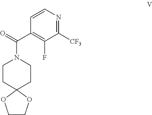 - ZQGYIMCJYKMORF-UHFFFAOYSA-N 1,4-dioxa-8-azaspiro[4.5]decan-8-yl-[3-fluoro-2-(trifluoromethyl)pyridin-4-yl]methanone Chemical compound C1=CN=C(C(F)(F)F)C(F)=C1C(=O)N1CCC2(OCCO2)CC1 ZQGYIMCJYKMORF-UHFFFAOYSA-N 0.000 description 14