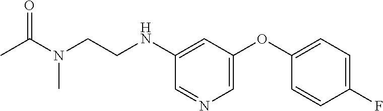 - BPACBFXULSQLDW-UHFFFAOYSA-N n-[2-[[6-[4-(2-fluoropyridin-4-yl)phenoxy]pyrazin-2-yl]-methylamino]ethyl]-n-methylacetamide Chemical compound CC(=O)N(C)CCN(C)C1=CN=CC(OC=2C=CC(=CC=2)C=2C=C(F)N=CC=2)=N1 BPACBFXULSQLDW-UHFFFAOYSA-N 0.000 claims description 3