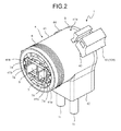 FIG. 3 illustrates an arrangement example of the three protrusions 50 formed on the inner cylindrical surface 5 a of the rotary cylinder 5. In this case, the protrusions 50 having the same shape are arranged at equal intervals (a phase difference of 120□) on the same circumference in the forward and rearward directions in the inner cylindrical surface 5 a. As an example, in FIG. 1, the protrusion 50 is formed in a columnar shape. However, the shape is not particularly limited, and may also be, for example, an elliptical column shape, a prism shape, or a truncated cone shape. In addition, the protrusions may also be arranged at different intervals on the same circumference, or may also be arranged at equal or different intervals on different circumferences. Conversely to this example, it can be postulated that the motion direction converting mechanism has a configuration in which the spiral grooves are formed on the inner cylindrical surface of the rotary cylinder, and the protrusions are formed on the outer peripheral surface of the slider.