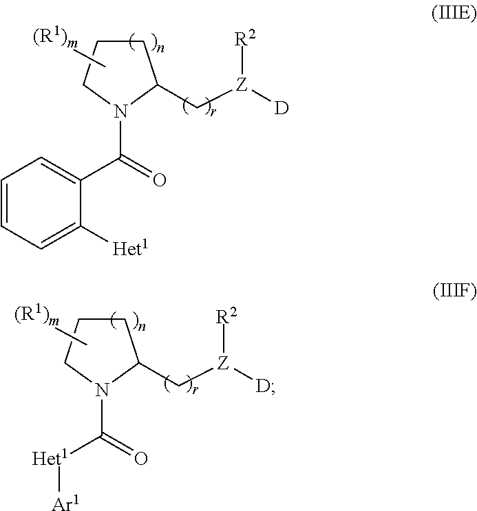 Additional isotopically labeled forms include isotopes of hydrogen, carbon, nitrogen, oxygen, phosphorous, fluorine, chlorine, and iodine, such as 2H, 3H, 11C, 13C, 14C, 15N, 18O, 17O, 31P, 32P, 35S, 18F, 36Cl, and 125I, respectively. Such isotopically labeled compounds are useful in metabolic studies (preferably with 14C), reaction kinetic studies (with, for example 2H or 3H), detection or imaging techniques [such as positron emission tomography (PET) or single-photon emission computed tomography (SPECT)] including drug or substrate tissue distribution assays, or in radioactive treatment of patients. In particular, an 18F or 11C labeled compound may be particularly preferred for PET or SPECT studies. PET and SPECT studies may be performed as described, for example, by Brooks, D. J., “Positron Emission Tomography and Single-Photon Emission Computed Tomography in Central Nervous System Drug Development,” NeuroRx 2005, 2(2), 226-236, and references cited therein. Further, substitution with heavier isotopes such as deuterium (i.e., 2H) may afford certain therapeutic advantages resulting from greater metabolic stability, for example increased in vivo half-life or reduced dosage requirements. Isotopically labeled compounds of this invention and prodrugs thereof can generally be prepared by carrying out the procedures disclosed in the schemes or in the examples and preparations described below by substituting a readily available isotopically labeled reagent for a non-isotopically labeled reagent.
