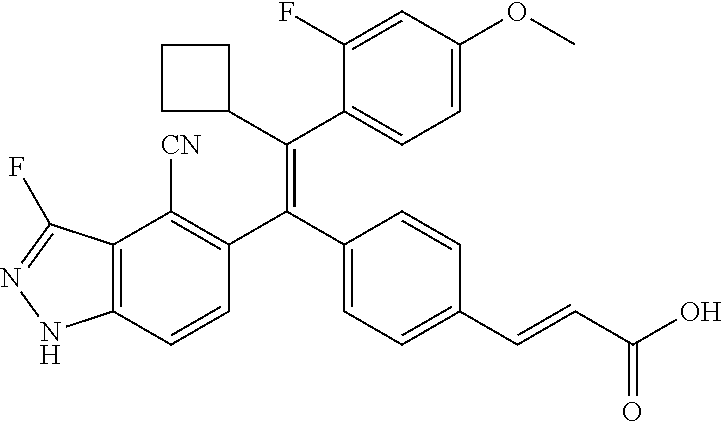 - (E)-3-(4-((E)-2-Cyclobutyl-1-(3-fluoro-1H-indazol-5-yl)-2-phenylvinyl)phenyl)acrylic acid;