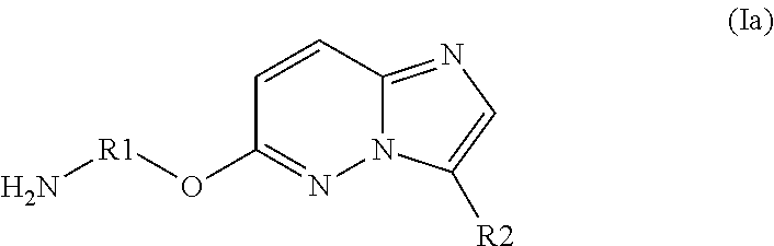 However, the state of the art described above does not describe the specific amino-substituted imidazopyridazine compounds of general formula (I) of the present invention as defined herein, i.e. an imidazo[1,2-b]pyridazinyl moiety, bearing: