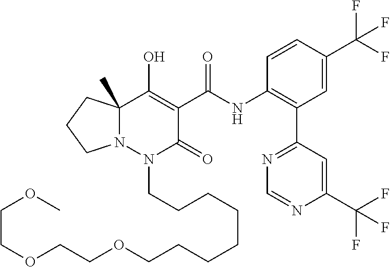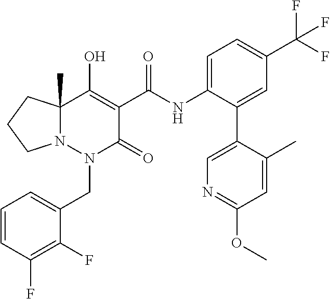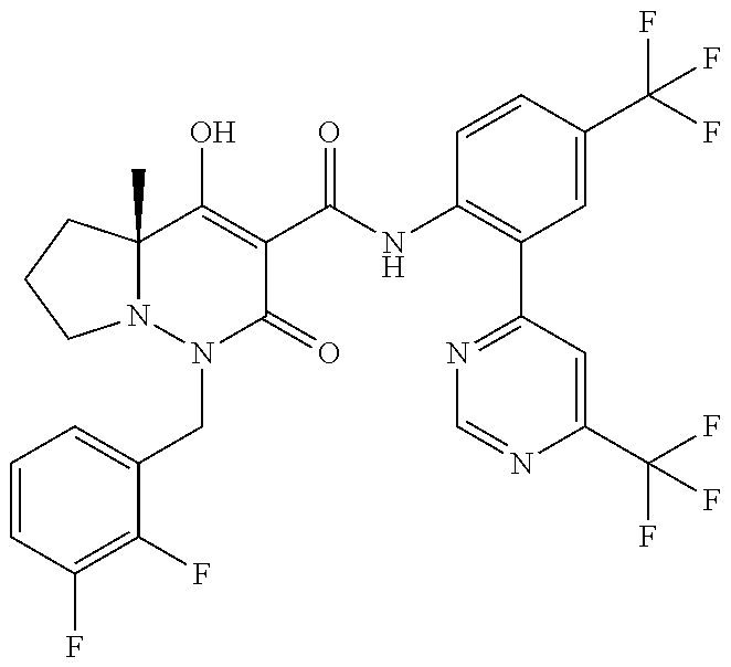 (4aR)-1-[[2,3-Difluoro-4- (3-morpholin- 4-ylprop-1-ynyl)phenyl]methyl]-4- hydroxy-4a-methyl-2-oxo-N-[4- (trifluoromethyl)-2-[6-(tri- fluoromethyl)pyridin-3-yl]phenyl]- 6,7-dihydro-5H-pyrrolo[1,2- b]pyridazine-3-carboxamide |