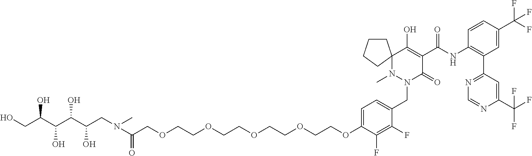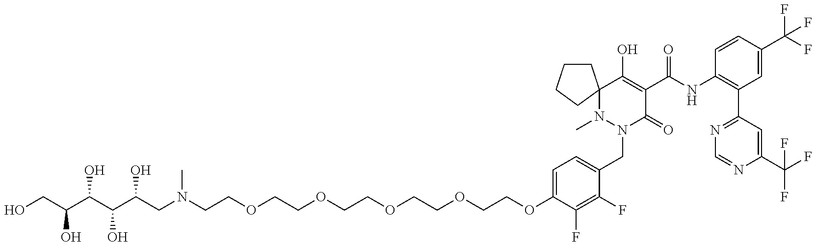 7-[[2,3-Difluoro-4- [4-[methyl- [(2S,3R,4R,5R)- 2,3,4,5,6-penta- hydroxyhexyl]amino]-4- oxobutoxy]phenyl] methyl]-10-hydroxy-6- methyl-8-oxo-N-[4- (trifluoromethyl)-2-[6- (trifluoromethyl) pyrimidin-4-yl]phenyl]- 6,7-diazaspiro[4.5]dec-9- ene-9-carboxamide |
