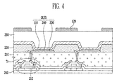 The transistor Tr is formed on a substrate 200 made of glass, plastic, silicon and/or synthetic resin, and a planarization layer 210 is formed on the transistor Tr.