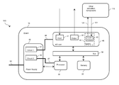 The card 100 also comprises a power supply 60. The power supply 60 receives an entry power 65 of a predetermined voltage, and comprises a plurality of configurable power supply circuits. For illustration purposes, the power supply 60 represented in FIG. 1 comprises two configurable power supply circuits 61 and 62. The power supply 60 may comprise any number of configurable power supply circuits, as long as it is compatible with the size and shape of the board 10, and with the space left by the other electronic components on the board 10.