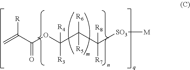 3, or OH; m represents an integer of 0 to 18; n represents an integer of 1 to 10; q represents 1 or 2; and M represents H, Li, Na, K, Rb, Mg, Ca, Sr, or Ba).