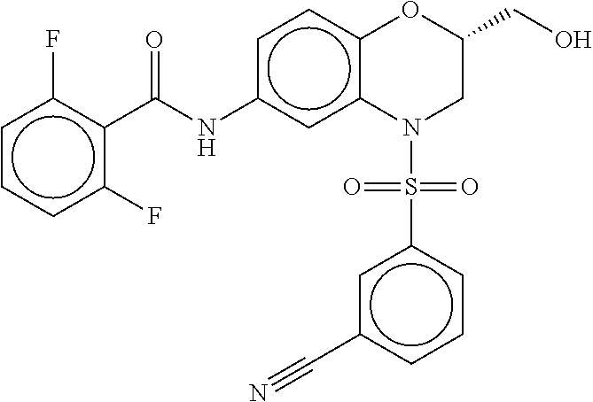 The location of a substituent on the tetrahydroquinoline or benzoxazine core can be characterized according to positional numbering in accordinance with the rules of chemical nomenclature. Positional numbering for the tetrahydroquinoline and benzoxazine cores is illustrated below.