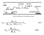 With the assumption of the full reaction of MoCl5 vapor, the partial pressure of MoS2, PMo, depends on the sublimation rate (molar loss rate per unit surface area) of sulfur ΦS and MoCl5, ΦMo, the flow rate of carrier gas Ar, JAr (mol/s), and the total pressure Ptotai in the synthetic setup as equation FIG. 25 (S1).