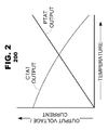 FIG. 2 illustrates a graph 200 representing temperature characteristics of a bandgap CTAT and PTAT source according to an embodiment of the present invention. As illustrated in FIG. 2, each of a CTAT and PTAT source may generate an output voltage or current signal that relates to an increase in temperature of the bandgap circuit. For example, a PTAT source may generate an output voltage or current signal that may increase in proportion to an increase in the bandgap circuit temperature. Conversely, a CTAT source may generate an output voltage or current signal that may be the complement of an increase in the bandgap circuit temperature. Ideally, the contribution of the PTAT and CTAT sources may be adjusted to provide a bandgap output signal that may remain constant as the temperature of the bandgap may increase.