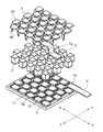 Thus, as described above, within element rows 6 the connectors 42 are inserted into the middle hole 33 b while between element rows 6 the connectors 42 are inserted in left and right holes 33 a, 33 c. As a result, elements can be electrically connected within element rows 6 and between element rows 6 using connectors 42 of the same shape, without changing the shape of the connectors 42.