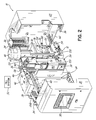 FIG. 2 is a perspective view of the adhesive dispensing device of FIG. 1, with the subassembly cover opened to reveal a melt subassembly.
