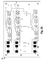 FIG. 2A shows a top view schematic illustration of the ink jet printed M×N, P-bit phased-array antenna 10 after ink jet printing of the second conductive layer as described in FIG. 1D. The multiple sets of three dots in series 201 signify that other devices and objects have not been shown for clarity, but it is understood that a particular number of non-illustrated devices and objects are to be included in order to comprise the M×N, P-bit phased-array antenna. The dashed lines 203 along the transmission lines 103 represent the transmission lines that would lead to the non-illustrated devices and objects. An RF signal applied at the RF coupler 104 is split using cascaded 50:50 power-splitters 205, such that the total physical path length of the transmission lines 103 from the RF coupler 104 to the input of any of the M×N, P-bit phase shifters 210 is substantially equal. The outputs from the M×N, P-bit phase shifters 210 each feed one of the M×N antenna elements 215, in order to form the M×N phased-array antenna. By controlling the On/Off states of the transistor switches 110 through applying a DC voltage through the contact pads of the second conductive layer, 2×P different paths and hence phase shifts for the RF signal can be chosen within each phase shifter. By controlling the On/Off states of the transistor switches 110 in each of the M×N phase shifters, the RF signal can be steered in free space at the antenna array. FIG. 2B shows a top view schematic illustration of the ink jet printed M×N, P-bit phased-array antenna 10 after ink jet printing of the second dielectric layer 111 as described in FIG. 1E. The interconnection holes 112 for each of the P-bit phase shifters 210 expose the conducting contact pads of the second conductive layer 109. FIG. 2C shows a top view schematic illustration of the ink-jet printed M×N, P-bit phased-array antenna 10 after ink-jet printing of the third conductive layer 113 as described in FIG. 1F. The conductive layer 113 provides for electrical continuity to each of the P-bit phase shifters 210 from the edges of the M×N, P-bit phased-array antenna 10.