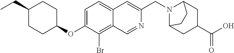 - WEUKWIXQPCHWDR-SWOBIMPZSA-N C[C@H]1CC[C@@H](OC2=CC=C3C=C(CN4C5CCC4CC(C(=O)O)C5)C=CC3=C2C(F)(F)F)CC1 Chemical compound C[C@H]1CC[C@@H](OC2=CC=C3C=C(CN4C5CCC4CC(C(=O)O)C5)C=CC3=C2C(F)(F)F)CC1 WEUKWIXQPCHWDR-SWOBIMPZSA-N 0.000 description 2