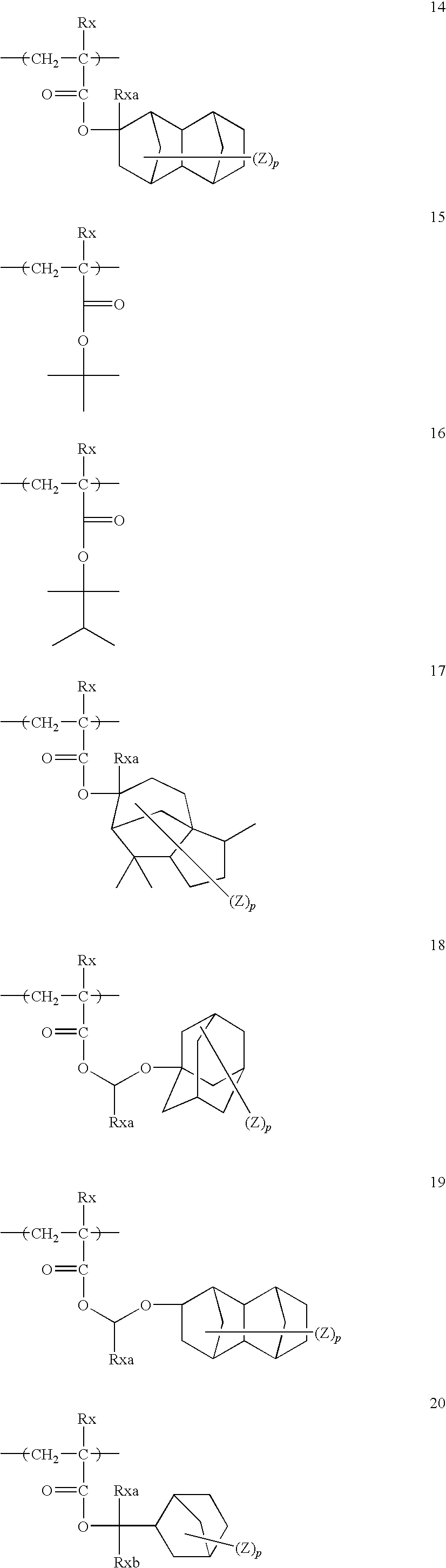 It is especially preferred for the acid generating group to be any of those with the structure of an onium salt, expressed by general formulae (2-1) to (2-3) and (3-1) to (3-3) below.