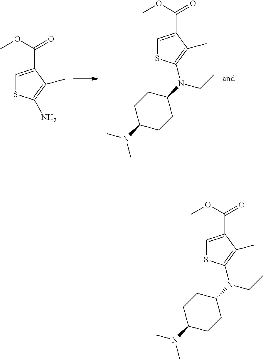 a) Methyl 5-(((cis)-4-(dimethyl amino)cyclohexyl)(ethyl)amino)-4-methylthiophene-3-carboxylate and Methyl 5-(((trans)-4-(dimethyl amino)cyclohexyl)(ethyl)amino)-4-methylthiophene-3-carboxylate