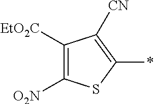 In a further aspect of the thiophene azo dye, X may be a moiety having Formula (II) below: