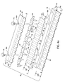 FIG. 3 is a perspective view of a potato slicing machine having a plurality of cutting head assemblies for producing the wavy potato stick product shown in FIG. 1;