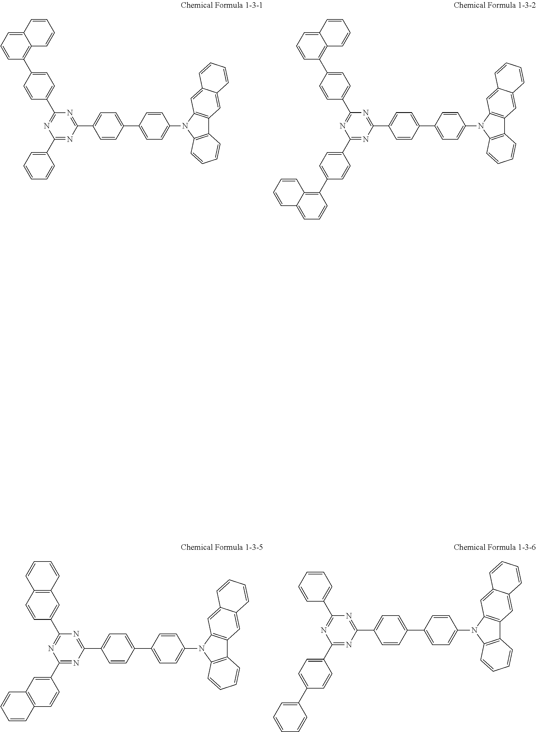 This is because the compound represented by Chemical Formula 1 is a bipolar type including both a p type and an n type, so that hole leakage can be prevented and an exciton can be effectively confined in the light emitting layer.