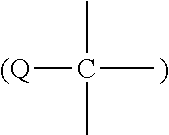 For the various embodiments, when m has a value other than zero, the carbon bonded to Q
