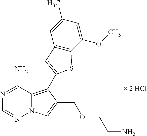 | WO2007056170A2 (en) | 2005-11-02 | 2007-05-18 | Bayer Healthcare Ag | Pyrrolo[2,1-f] [1,2,4] triazin-4-ylamines igf-1r kinase inhibitors for the treatment of cancer and other hyperproliferative diseases |