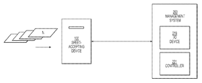 FIG. 1 is a schematic representation showing an embodiment of sheet-accepting device in communication with a management system in accordance with the present invention.