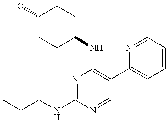 In December 2013, Zhang, W., et al., also published a comparison of the activity of forty six 5-arylpyrimidine based compounds for treatment of tumors “(Pseudo-cyclization through intramolecular hydrogen bond enables discovery of pyridine substituted pyrimidines as new Mer kinase inhibitors”, J. Med Chem., vol. 56:9683-9692, 2013). MerTK, Axl and Tyro3 IC50 data were presented for the selected 5-arylpyrimidines, and observations about activity based on substitutions at the 5-aryl and the 2- and 4-amino groups were discussed. Zhang, et al. highlighted UNC2250 as a potential lead compound: