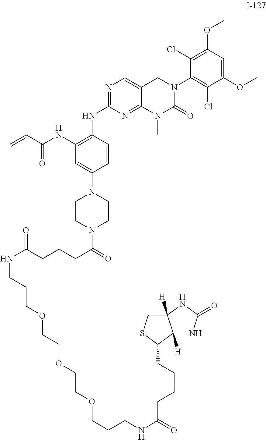 - JPUGSWOBJUBIPI-UHFFFAOYSA-N C=CC(=O)NC1CC(=O)NCC1NC1=NC2=C(C=N1)CN(C1=C(Cl)C(OC)=CC(OC)=C1Cl)C(=O)N2C Chemical compound C=CC(=O)NC1CC(=O)NCC1NC1=NC2=C(C=N1)CN(C1=C(Cl)C(OC)=CC(OC)=C1Cl)C(=O)N2C JPUGSWOBJUBIPI-UHFFFAOYSA-N 0.000 description 4