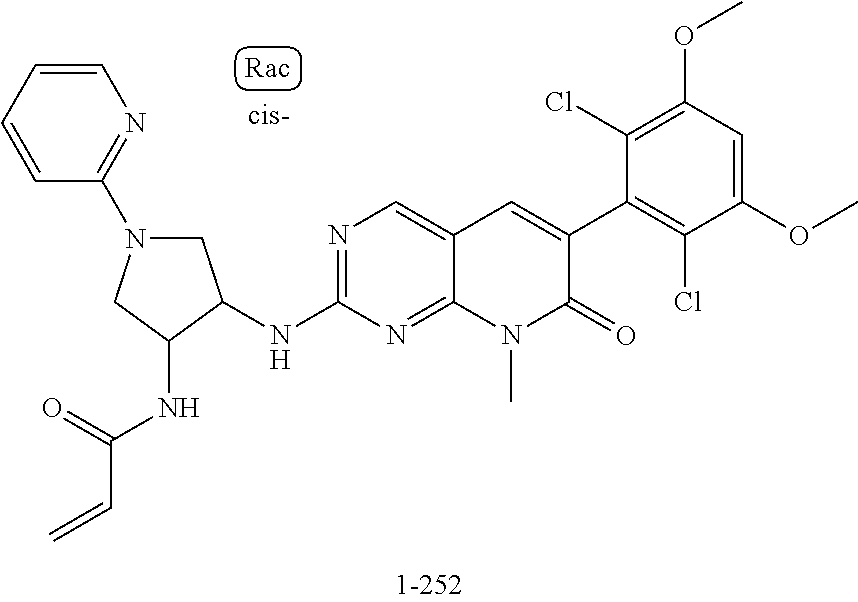 - YEJJJHLGLZRNGR-MSOLQXFVSA-N C=CC(=O)N[C@@H]1CCCC[C@@H]1NC1=NC2=C(C=N1)CN(C1=C(Cl)C(OC)=CC(OC)=C1Cl)C(=O)N2CC1=CSC=N1 Chemical compound C=CC(=O)N[C@@H]1CCCC[C@@H]1NC1=NC2=C(C=N1)CN(C1=C(Cl)C(OC)=CC(OC)=C1Cl)C(=O)N2CC1=CSC=N1 YEJJJHLGLZRNGR-MSOLQXFVSA-N 0.000 description 4