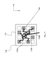 FIGS. 3 and 4 show a side view and an underside view respectively of an alternative embodiment of the invention in which the coupling structure 104 is formed from an array of probes 114. Each of the probes 114 is an elongate conductor which is configured to couple, at one end, to a track or to connectors on the substrate 106, and at the other end, to the surface 108 of the resonator body 102 (FIG. 3). In this embodiment, the probes 114 are substantially circular in cross section (see FIG. 4). However, probes having other cross sections, such as square or elliptical, may be used in alternative embodiments. A number of connections, such as a connection between the metallic coating 110 and a track or groundplane layer on the substrate 106, have been omitted from FIG. 3 (and FIGS. 5 and 6) for clarity. Those skilled in the art will appreciate, however, that the filter 100 may include further connections and components not essential to the understanding of this invention and which have been omitted from the drawings.