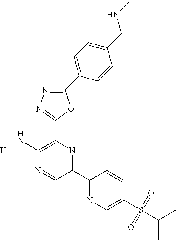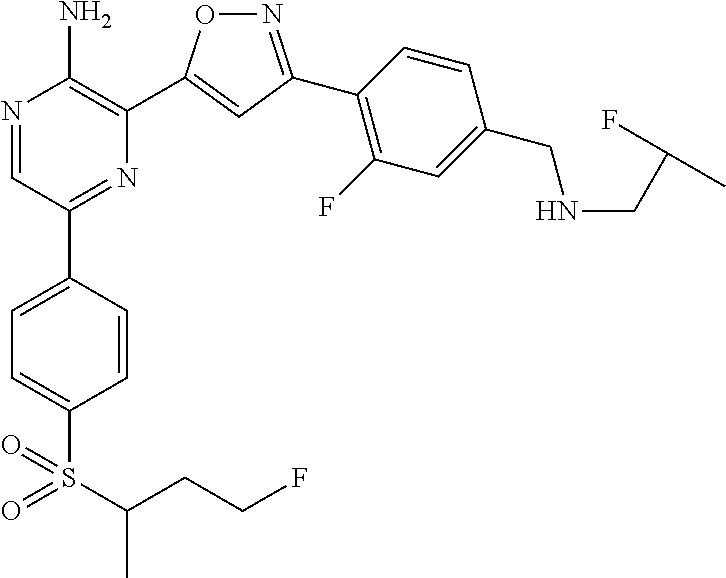In some embodiments, J2 is CH2CH2OH, SCH(CH3)2, —C≡CCH3, halo, CN, CON(CH3)2, CH2CN, S(O)CH2CH2NH2, SCH2CH2NH2, C(O)OCH3, CH2N(CH3)2, S(O)CH2CH2NHBOC, N(CH3)2, NHSO2CH3, CH═CHF, CH2OCH3, CH═CH2, SCH2CH3, or —CH═CH.