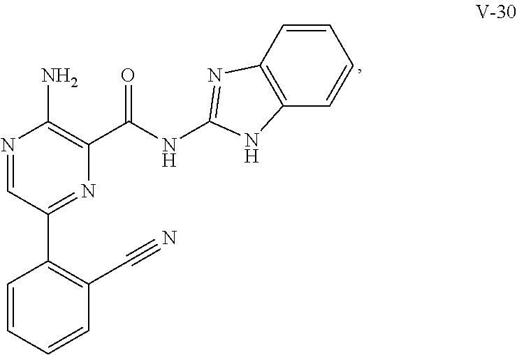 It should be understood that Ring A structures can be bound to the pyrazine ring in two different ways: as drawn, and the reverse (flipped). For example, when Ring A is