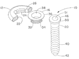 - the head portion 46 further includes a torque driving recess 52 , with an optional bore 80 which retains the screw 54 on the post of a screwdriver.