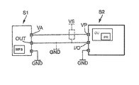 The second IC S2 includes a connection VP to provide a supply voltage VS and a bidirectional signal connection I/O and a reference connection GND. The second IC S2 includes a control unit CU which is not shown. It is understood that the control unit CU preferably includes a processor unit PR. The present supply voltage connection VA is interconnected with the connection in order to provide a supply voltage VP. Further, the signal output OUT is interconnected with the signal connection I/O, wherein the signal output OUT can be connected to a reference potential by means of the signal connection I/O. The reference potential can preferably be configured as ground potential GND or as supply voltage VS—each illustrated as dotted lines.