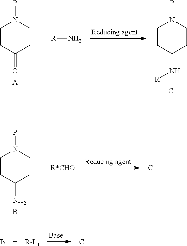 - C07D211/08—Heterocyclic compounds containing hydrogenated pyridine rings, not condensed with other rings with only hydrogen or carbon atoms directly attached to the ring nitrogen atom having no double bonds between ring members or between ring members and non-ring members with hydrocarbon or substituted hydrocarbon radicals directly attached to ring carbon atoms