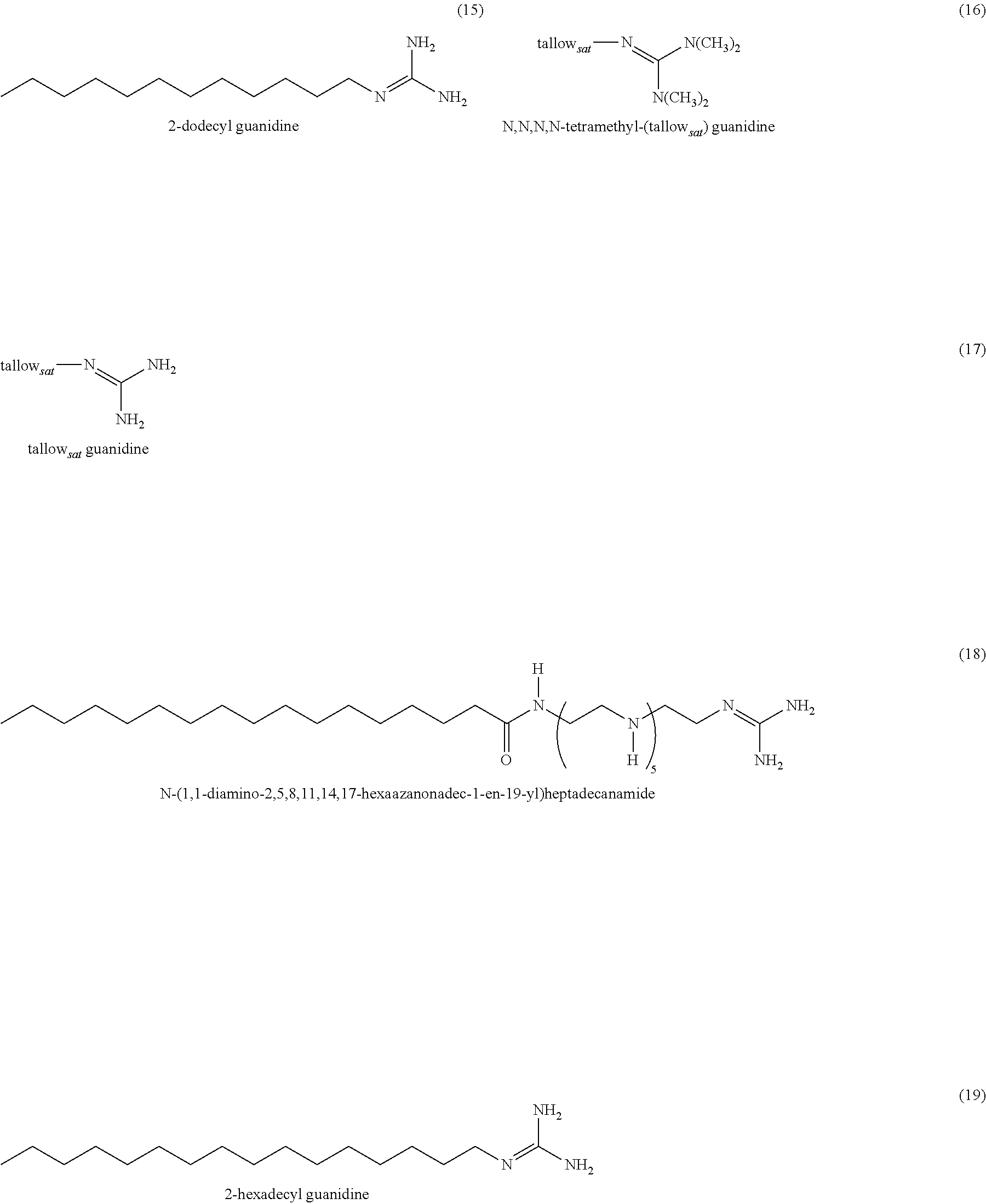 Specific examples of some preferred guanidine compounds for use in the invention include, but are not limited to: