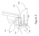 FIG. 3 is a side elevation view of an alternative exemplary lift chair with internal mechanisms exposed and a movable portion in the lowered or first position.