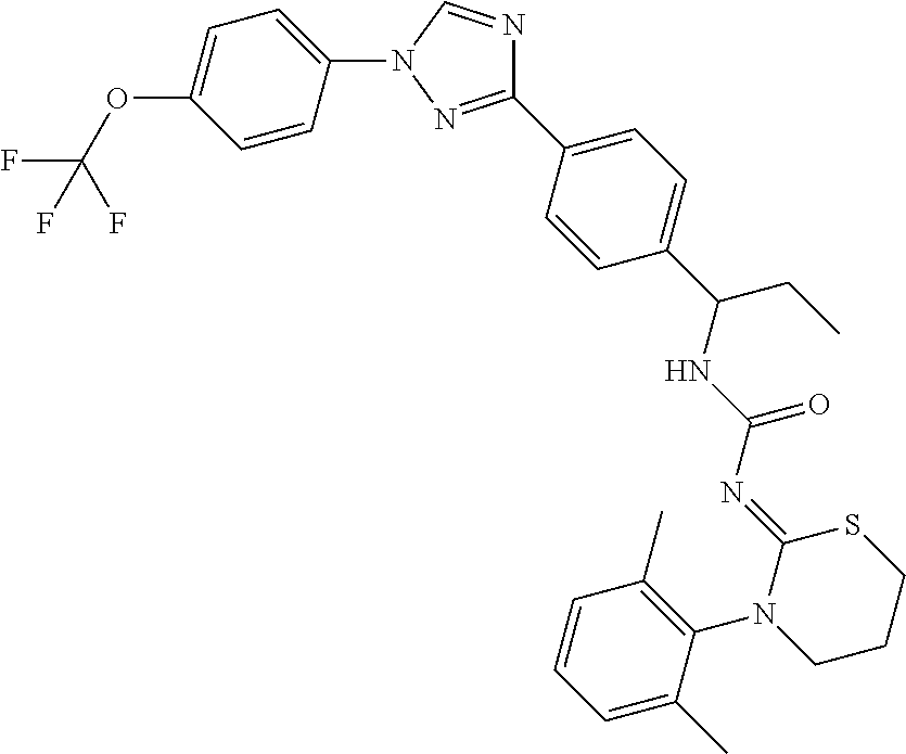 An isocyanate, Ar1-Het-Ar2-L-NCO (1-2), can be treated directly with an N-aryl thiourea (2-1) in the presence of about 0.1 to about 2 equivalents of an inorganic base such as cesium carbonate or sodium hydride, resulting in the formation of a thiobiuret (2-2, Scheme 2). The reaction can be performed at temperatures from about 0° C. to about 100° C., preferably from about 20° C. to about 80° C., in an aprotic solvent or solvent mixture chosen from acetonitrile, acetone, toluene, tetrahydrofuran, 1,2-dichloroethane, dichloromethane, or mixtures thereof, but use of acetonitrile is preferred.