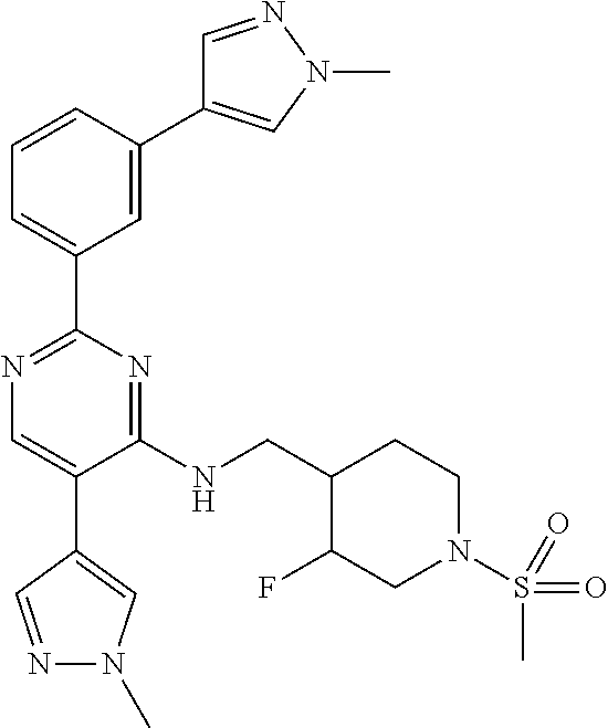 - NFQHYUUFABBBAI-UHFFFAOYSA-N 1-methyl-4-[3-(4,4,5,5-tetramethyl-1,3,2-dioxaborolan-2-yl)phenyl]pyrazole Chemical compound C1=NN(C)C=C1C1=CC=CC(B2OC(C)(C)C(C)(C)O2)=C1 NFQHYUUFABBBAI-UHFFFAOYSA-N 0.000 description 23
