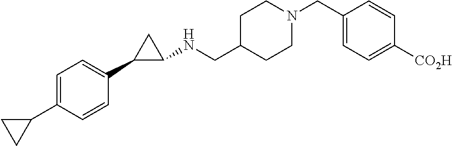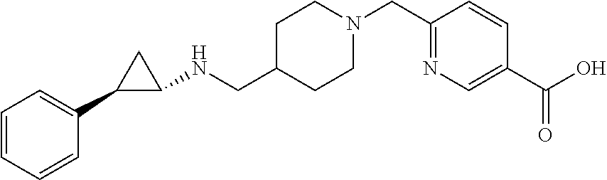- 4-((4-((((1R,2S)-2-phenylcyclopropyl)amino)methyl)piperidin-1-yl)methyl)benzoic acid;