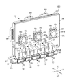As illustrated in FIG. 3B, when the fan 681 is driven, the blade sections 681 a rotate to take in air outside the fan 681 and generate air flow. The generated air flow flows from the inlet 66 b toward the heat sink 700. Then, the air flow is blown against one surface 700 a of the heat sink 700. Then, the air flow having been blown against the one surface 700 a flows in the +Z direction and the −Z direction. The air flows having flowed in the +Z direction and the −Z direction are blown against one surface 710 a of each of the wall sections 710. Thereby, the direction of the air flow is changed such that the air flow flows toward the cover frame 66 (−X direction). Then, the air flow having flowed toward the cover frame 66 is discharged from the outlet 66 c to the outside of the cover frame 66. In addition, in the embodiment, the wall section 710 or the like is not provided in the +Y direction or the −Y direction of the heat sink 700, and a space 800 continuous in the +Y direction and the −Y direction of the heat sink 700 is formed. Hence, part of the air flow flows to another circuit substrate 67, which is adjacently disposed, via the space 800. This enables cooling of another circuit substrate 67 which is adjacently disposed.