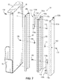 FIG. 7 is an exploded view of a slide arrangement used in the pop up storage system.