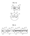 FIG. 8 is plan views and cross-sectional views of six different embodiments of joint structure designs that can be used in compression cold welding to form a hermetic seal.