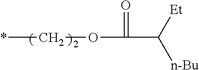 R1 and R2, each independently, represent preferably a substituted ethyl group, a substituted butyl group, a substituted hexyl group, a substituted 2-ethylhexyl group, more preferably a substituted ethyl group, a substituted butyl group, and a substituted hexyl group, and still more preferably, an acyloxy group substituted ethyl group, an acyloxy group substituted butyl group, an acyloxy group substituted hexyl group, an alkoxy group substituted ethyl group, an alkoxy group substituted butyl group, an alkoxy group substituted hexyl group.