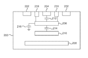 Referring now to the drawings in which like numerals represent the same or similar elements and initially to FIG. 2, a cross-sectional diagram of a tunable transmission line is shown. A set of transmission lines are embedded in a chip or substrate. The chip may be a monolithic crystal or semiconductor-on-insulator substrate having the transmission lines formed thereon, or may simply be a multi-layer printed circuit board. A transistor provides a tunable capacitance 216 that allows for adjustment of the overall capacitance of the device. It should be noted that the tunable capacitance 216 is zero if the associated transistor is turned on and is non-zero when the capacitor is turned off.
